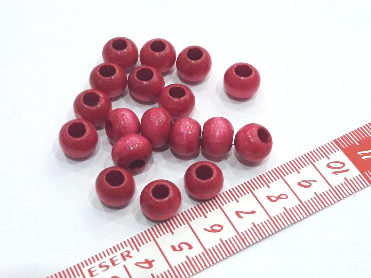 Намистини дерев'яні, коралики 10 мм, отвіт 4 мм. Малинові лаковані 20 шт/уп.